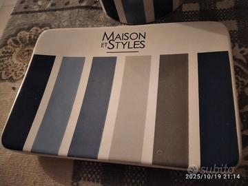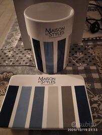 set bagno portaspazzolino+ portasapone firmato Maison et Styles, in ceramica bianca con strisce vari colori che si adattano su vari bagni,nuovo,ancora imballato,