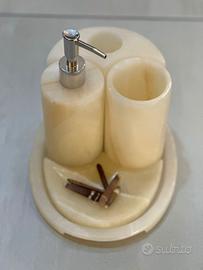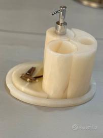 Rendi unico il tuo bagno con questo esclusivo set realizzato in onice naturale: un materiale pregiato, raffinato e senza tempo.
