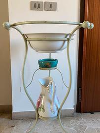 Lavabo in ferro con porta asiugamani , brocca e bacinella . Anni ‘30 .