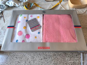 Set bagno Zucchi NUOVO, mai usato, nella confezione originale! Modello "Coriandoli" (codice C4, var.1, c.t. 4550), composto da 1 telo doccia, 2 asciugamani grandi e 2 asciugamani ospite. Tessuto di alta qualità, perfetto per un regalo o per coccolarsi. Prezzo: €45. Spedizione disponibile (a carico dell'acquirente). Contattami per maggiori informazioni o foto.