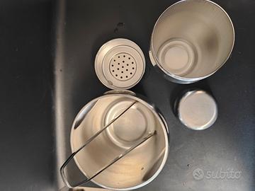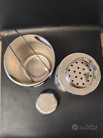 Vendo set bar/cocktail originale Alessi vintage, composto da: - 1 shaker in acciaio inox - 1 secchiello/porta ghiaccio in acciaio inox - 1 pinza per il ghiaccio Linea Alessi “By Appointment”, pezzo vintage anni ’90 circa. Materiale: Realizzato in acciaio inox 18/10 – Italy. Condizioni Il set è mai usato. È stato conservato per molti anni, quindi può presentare solo lievissimi segni superficiali da conservazione/maneggiamento, ma non è mai stato utilizzato. Ideale per - amanti di Alessi - appassionati di design italiano - collezionisti di oggetti vintage - arredare angolo bar / soggiorno / taverna - idea regalo Oggetto bello sia da usare che da esporre. Ritiro in loco