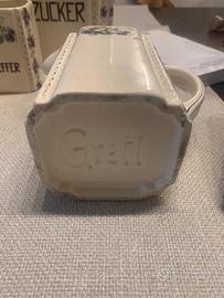 Vendo set barattoli cucina di 8 pezzi in porcellana tedesca d’epoca primi del novecento marca GREFL a euro 70 .