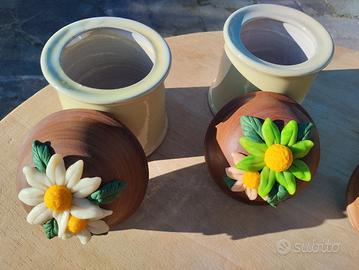SET 4 BARATTOLI da cucina lavorati completamente a mano + scritta artigianale da appendere in cucina
