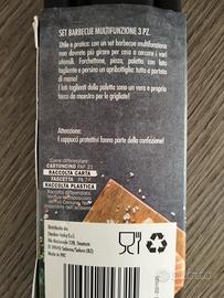 Set barbecue multifunzione 3 pezzi composto da: Forchettone,pinza,paletta con lato tagliente e persino un apribottiglie.