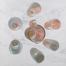 Raffinato set composto da 6 bicchieri da acqua o bibita e una caraffa, realizzati in cristallo trasparente. Il design unisce eleganza e modernità, arricchendo la tavola con uno stile sofisticato. Perfetto per occasioni speciali o per donare un tocco chic alla quotidianità.