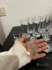 Vendo set di bicchieri in vetro spesso, modello robusto con base decorata.