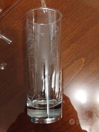 Set di 6 bicchieri, semplicissimi. La base di ciascun bicchiere reca un cerchio di argento. L'etichetta sulla bottiglia è sempre d'argento.