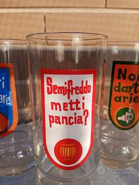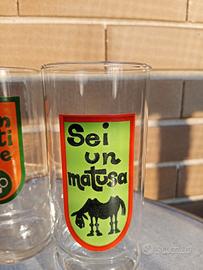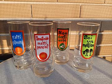 Set 4 bicchieri con frasi simpatiche come nuovi, mai usati. misure: 15,5 x 6,5 cm