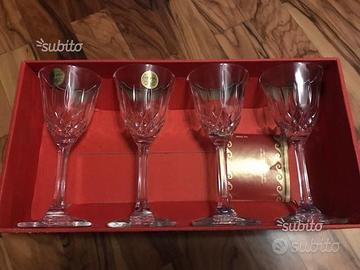 Vendo set di bicchieri in cristallo, 4 bicchieri per confezione. Mai usati, ancora con etichetta sul vetro. Confezione perfettamente integra, ottimi come acquisto personale o regalo.