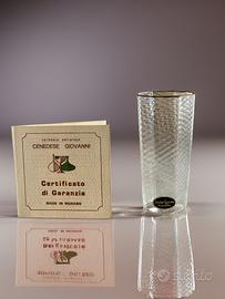 Oggetti di pregio, lavorati con la tipica tecnica della canna ritorta trasparente, finitura con bordo in oro zecchino 24 carati, e certificato originale di garanzia.