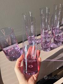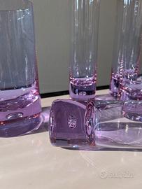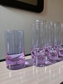 Set di sei bicchieri da cocktail o bibita e caraffa in vetro viola #alessandrite , disegnati da Sergio Asti per Arnolfo di Cambio negli anni ‘60.