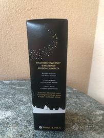 Set da 4 bicchieri a forma di tulipano del edizione limitata Inverno Warsteiner con decorazioni di stelle dorate, fiocchi di neve e profilo di alberi alla base. Nuovi con scatola originale.
