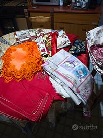 Piu una moltitudine di tovaglie, tende e centrotavola a tema natalizio e non, circa 30 pezzi.