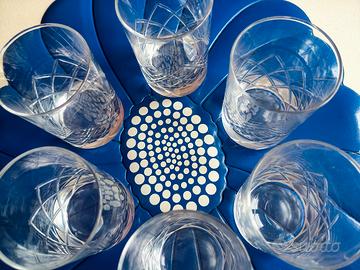 Vendo set 6 bicchieri in cristallo inciso con motivi geometrici a stella vintage. Ritiro a Milano.