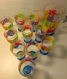 Vendo 10 bicchieri Titti capienza 400 ml ciascuno altezza 16 cm, Caraffa capienza 2 litri altezza 24 cm e piccolo vassoio diametro 31,5 cm. Solo per veri collezionisti.