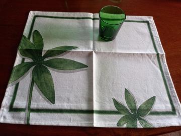 - Set 6 TOVAGLIETTE americane con stampa di foglie , linea verde.
