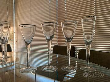 Servizio da tavola di bicchieri, Venini. Set di 48 pezzi, 2 mancanti. Bicchieri in cristallo con orlo in argento. Servizio unico, preso a Venezia negli anni 80’, edizione speciale- questo set come altri non presenta la tipica firma sotto i bicchieri. Tutti i bicchieri in perfette condizioni. Si preferisce ritiro a mano.