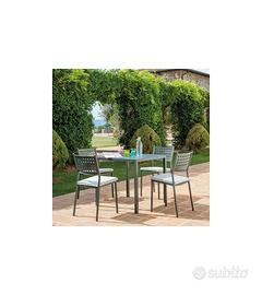 Tavolo E Panche in ferro con top effetto legno