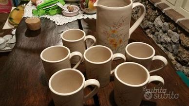 Set boccale piu bicchieri da birra in cramica decorata. Prodotto nuovo mai utilizzato, rimanenze di negozio. POSSIBILITÀ DI SPEDIZIONE E PAGAMENTO IN CONTRASSEGNO.
