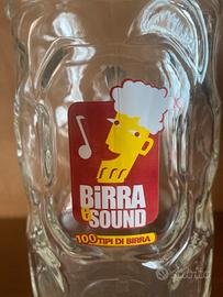 Splendido set composto da 2 boccali di birra in vetro massiccio, originali dell'evento "Birra e Sound" (il celebre festival europeo della birra nel Salento). I boccali presentano il classico design "dimpled" (a fossette) che garantisce un'ottima presa e mantiene la freschezza della bevanda. Sul fronte è presente l'iconico logo colorato dell'evento con la scritta "100 tipi di birra".