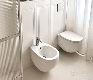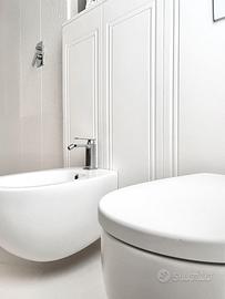 📷 Come da foto, la resa estetica è impeccabile anche a fianco di sanitari moderni e rubinetterie in finitura cromata o nera.