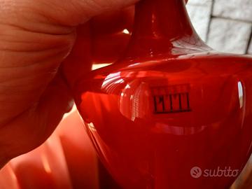 Bellissimo set vintage firmato Pitti Studio composto da 1 bottiglia/decanter con tappo originale e 6 bicchierini coordinati in vetro rosso. Design italiano anni 70/80, molto decorativo e perfetto anche come oggetto da collezione o per arredamento vintage. Condizioni pari al nuovo, nessuna scheggiatura o difetto. Il vetro rosso intenso e la forma elegante rendono il set molto particolare. Spedizione con imballaggio molto accurato. Dettagli: • Marca: Pitti Studio • Pezzi: 1 bottiglia + 6 bicchieri • Colore: rosso • Condizione: eccellente / come nuovo • Stile: vintage / design italiano