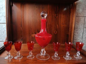 Set bottiglia bicchierin Pitti Studio vetro rosso