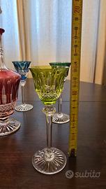 Pregiato set di bottiglia rosolio con sei bicchieri, tutto in cristallo. Mai usato sempre in vetrina