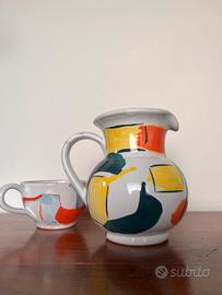 set unico realizzato in ceramica con decorazione in maiolica, interamente fatto a mano.