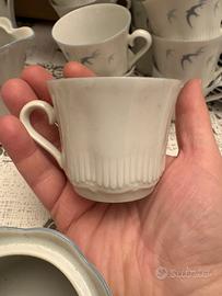 Set tazzine da caffè da 12 tazzine con caffettiera, lattiera, zuccheriera con motivo decorativo con rondini
