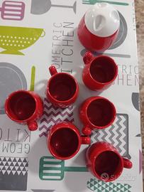 set caffe' 6 tazzine e zuccheriera, colore rosso perfette per natale e per regalo. sono di mestre.