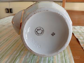 L'oggetto presenta decorazioni floreali e una finitura iridescente