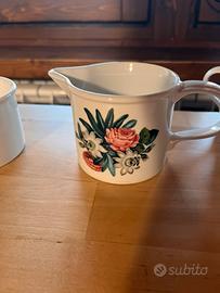 Set da caffè con piattino della collezione "Botanic Garden" di Portmeirion, caratterizzata dal motivo "Rosa e fiore della passione il set si compone di 11 tazzine, 12 piattini, una zuccheriera (il coperchio è leggermente scalfito nella parte sottostante), una piccola teiera per il latte e altro contenitore
