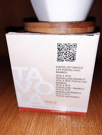 Set da caffè (2 tazzine, zuccheriera, cucchiaino e vassoio) in porcellana e bamboo, marca Brandani, in confezione originale.
