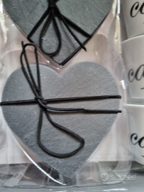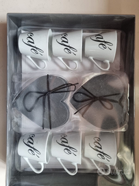 Set caffè formato da 6 tazzine con rispettivi piattini a forma di cuore in ardesia