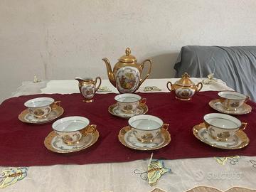 servizio da the e caffè in porcellana bavaria 5 corone placcato in oro anni 50/70