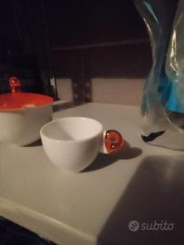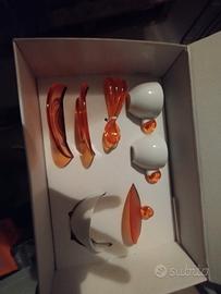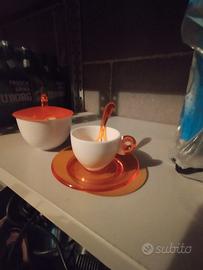 set nuovo mai usato in scatola originale da caffè per 2, guzzini arancione..le parti colorate in plastica le parti bianche in ceramica
