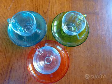 5 tazzine e piattini da caffè di colori diversi simpatiche