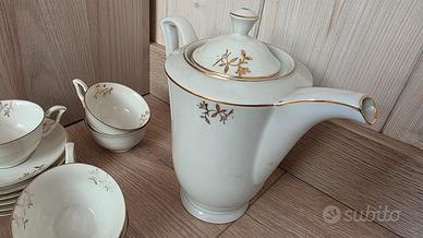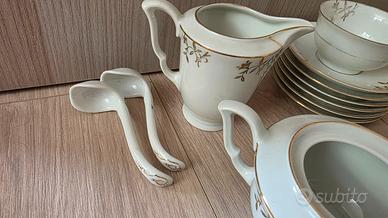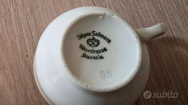 Set di 5 tazzine con piattini zuccheriera teiera porta panna e 2 cucchiaini tutto porcellana Condizioni perfette anni '60 o '70 per collezionisti Marchiato Joahn Seltmann Baviera