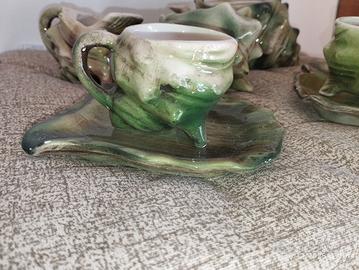 Si tratta di un set vintage di teiera, lattiera e zuccheriera in ceramica testurizzata a forma di conchiglia o lumaca di mare, con smalto verde da 6 persone. prezzo trattabile e spedizione a carico dell'acquirente