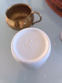 set caffè 6 tazze +zucchero era in porcellana Monopoli e Ottone in buono stato