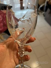 6 calici spumante, 6 calici vino, 6 calici acqua in cristallo.