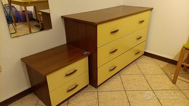 "Vendo esclusivamente in coppia set composto da comò (settimino) e comodino coordinato. Non è roba moderna di cartone pressato: i mobili sono in legno massiccio/pesante, solidi e fatti per durare.