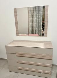 Vendo elegante set coordinato per camera da letto in legno, rifinito nella raffinata tonalità color tortora. Il design è moderno e lineare, perfetto per chi cerca un ambiente luminoso e accogliente.