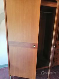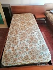 2 letti singoli con reti metalliche, armadio e scrivania con sedia