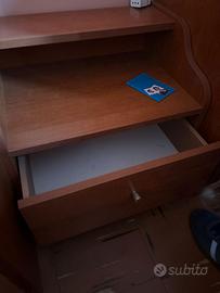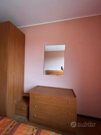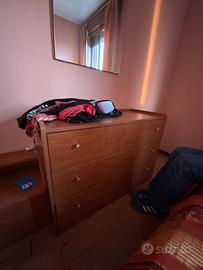 comodini, cassettiera e specchio.