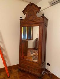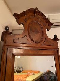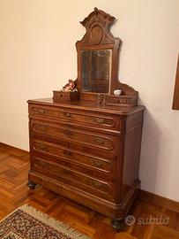 Set camera da letto in legno massello stile Chippendale. Composto da letto matrimoniale, cassettiera con specchio e armadio con specchio. Consegna a mano