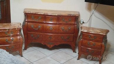 Set camera da letto stile Luigi XV – Comò + 2 comodini con marmo