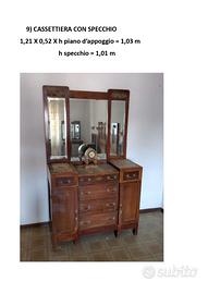 Composto da armadio con ante a specchio, tavolino specchiera, comò e due comodini , il tutto da restaurare. Misure nelle foto. Smontaggio e trasporto a carico dell'acquirente.