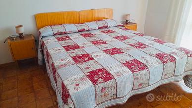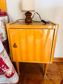 Set camera da letto vintage in legno e formica composto da due testiere letto singolo abbinabili, due comodini, armadio a due ante, scrivania. Misure: Armadio 2 ante con specchio 150x55x180 Comodino 40x 30x55 Scrivania 70x50x80